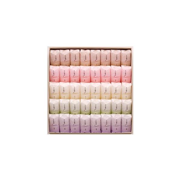 まゆの形をした可愛らしい箱の中には、5色のカラフルなまゆの形をした最中が入っています。味は小倉や胡麻、白つぶし、柚子、黒糖の餡でとても甘いですが、パリッとした皮と合わさりちょうど良い味わいです。見た目が可愛く華やかなので、東京土産としてとても人気ですよ!