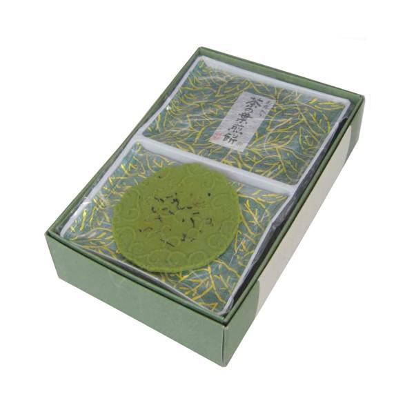 宇治抹茶100%使用した薄焼きのおせんべい生地の表面に、さらに玉露をまぶした、サクッと軽い食感の抹茶お煎餅です。意外にも主張しすぎない抹茶の香りは、老若男女問わず、どなたにも好まれる昔ながらの味わいといえます。甘いものが苦手な方や、ご年配の方へのお土産にもおすすめです。