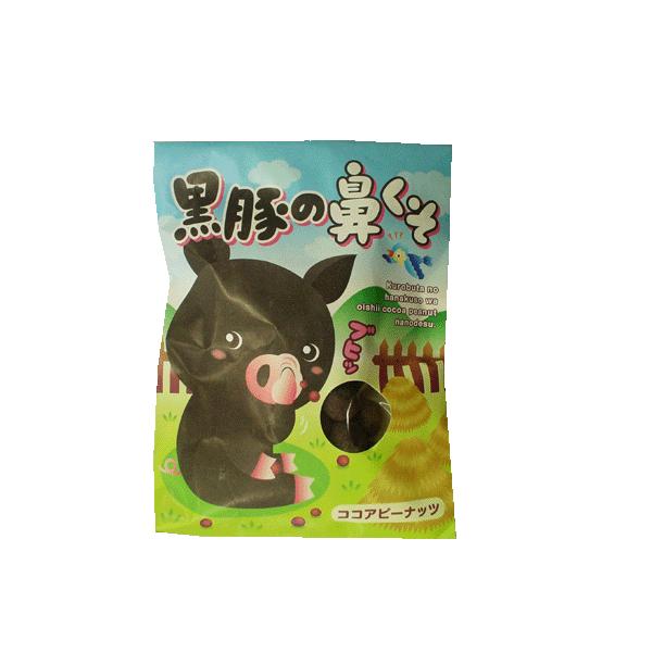 かわいらしい黒豚のイラストと、思わず二度見してしまうネーミングの「黒豚の鼻くそ」(笑) とはいっても、黒豚は使われておらず、ピーナッツをココアで包んだ食べやすいお菓子ですよ。お菓子としては鹿児島らしさはありませんが、ネタとして購入する人も多い商品です。