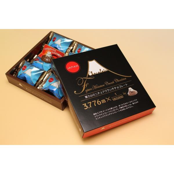 富士山の形をしたチョコレートのサイズは、標高3,776メートルの富士山の約18万分の1。富士山頂にふきが積もっている様子を表しています。パッケージデザインは漆黒に金箔印刷を使用していて、高級感もあるのにお値段は8個入りで500円とお安めなので、ばらまき用としてもおすすめです。