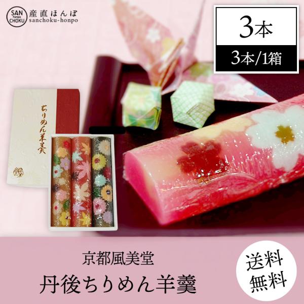 『ちりめん羊羹』は、丹後ちりめんの反物を型取りした着物柄のおしゃれな和菓子です。写真を撮りたくなるほど可愛い花模様が特徴的で、これらのデザインは季節によって変わります。白あんの練りようかんは、とても上品な甘さであっさりしていて美味しいと人気があります。あの上皇后美智子様も召し上がったことがあるそうですよ。とにかく可愛いお土産なので、女性へのお土産におすすめです。2本セットから販売されています。