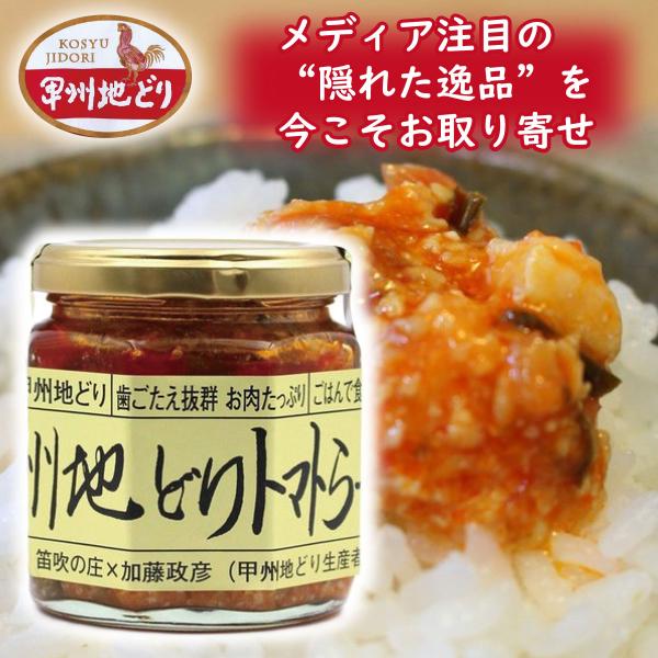 全国ご当地食べる調味料ランキング1位の「笛吹の庄」の「にんにくトマトラー油」は、嵐にしやがれや、ヒルナンデスなどメディアでも紹介され話題の商品になります。砕いたにんにくを素揚げし、ニラや味噌、白ワインと共に煮込んで自家製トマトピューレを合わせたもので、ご飯のお供にはもちろん、いろんな料理でアレンジを楽しめる万能調味料です。