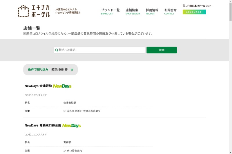 | ホームページ | https://shop.j-retail.jp/eki/spot/list |