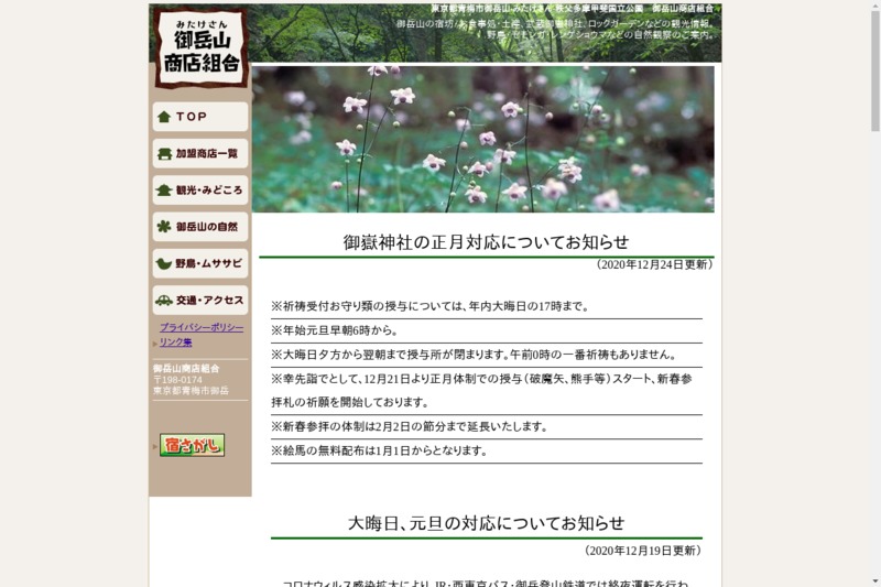 ホーム東京/関東のショップ東京都のショップ青梅市のショップ 御岳山商店組合 2021年1月5日 SHARE ポスト シェア はてブ LINE 店舗名 御岳山商店組合 住所 〒198-0175 東京都青梅市 Edo Ome Mitakesan 119 電話番号 – ホームページ http://mitakesan.com/ 営業時間 –