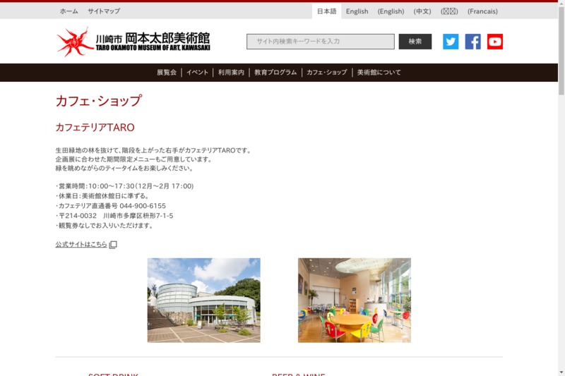 ホームページ https://www.taromuseum.jp/cafeshop.html