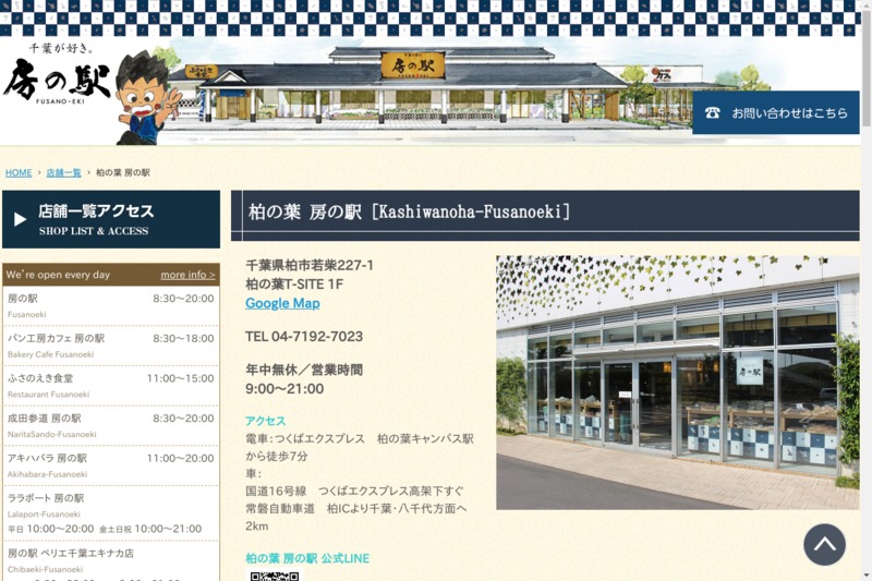 | ホームページ | http://fusanoeki.fusa.co.jp/store/kashiwanoha/index.html |