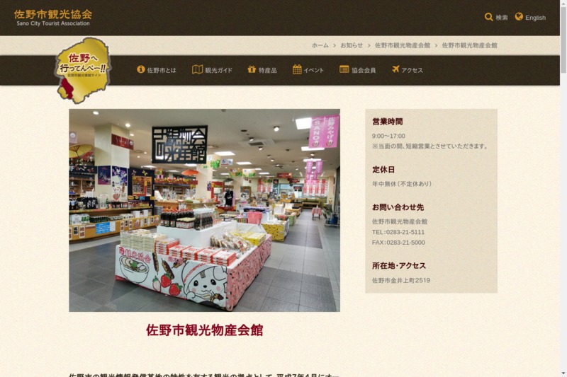 | 店舗名 | 佐野市 観光物産会館 |