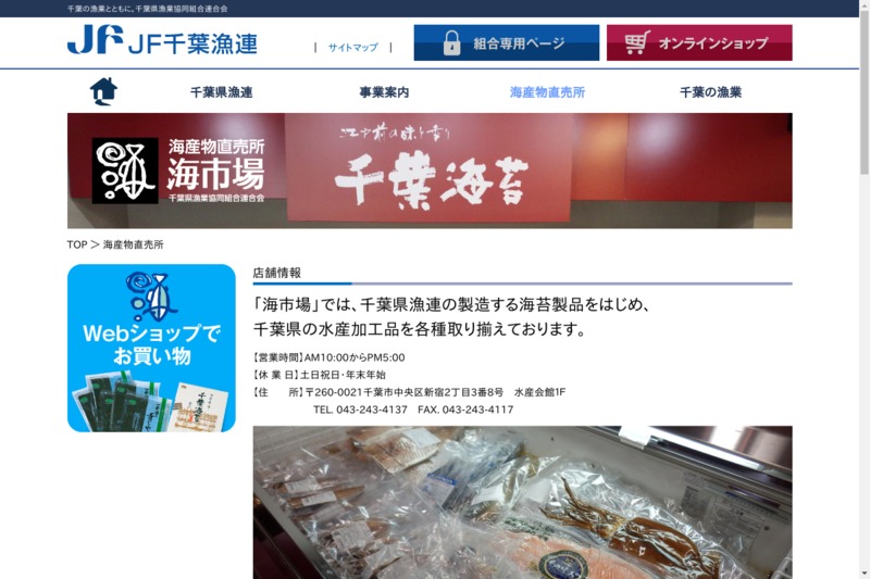 | 店舗名 | 千葉県漁連 海産物直売所「海市場」 |