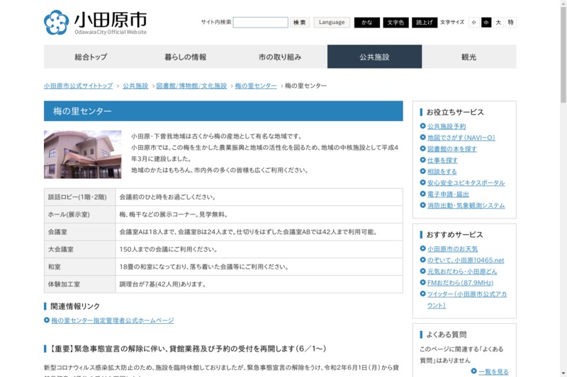 | ホームページ | https://www.city.odawara.kanagawa.jp/public-i/facilities/museum-etc/umesen.html |