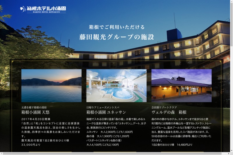 | ホームページ | https://www.yunessun.com/hakonehotelkowaki-en/index_pc.html |