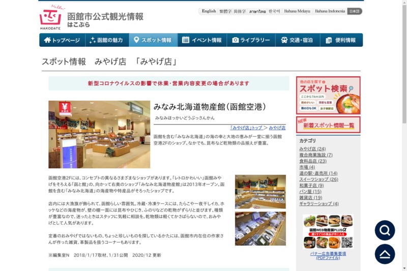 | 店舗名 | みなみ北海道物産館 |