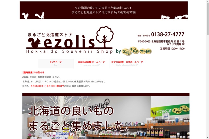 | 店舗名 | まるごと北海道ストアえぞりすbyねばねば本舗 |