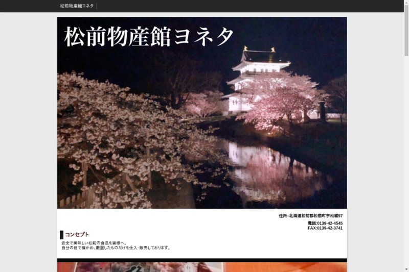 ホーム北海道/東北のショップ北海道のショップ松前郡松前町のショップ ㈲ヨネタ 松前物産館 2021年1月5日 SHARE ポスト シェア はてブ LINE 店舗名 ㈲ヨネタ 松前物産館 住所 〒049-1511 北海道松前郡松前町松城57 電話番号 0139-42-4545 ホームページ https://yonetabussankan.crayonsite.com/ 営業時間 –