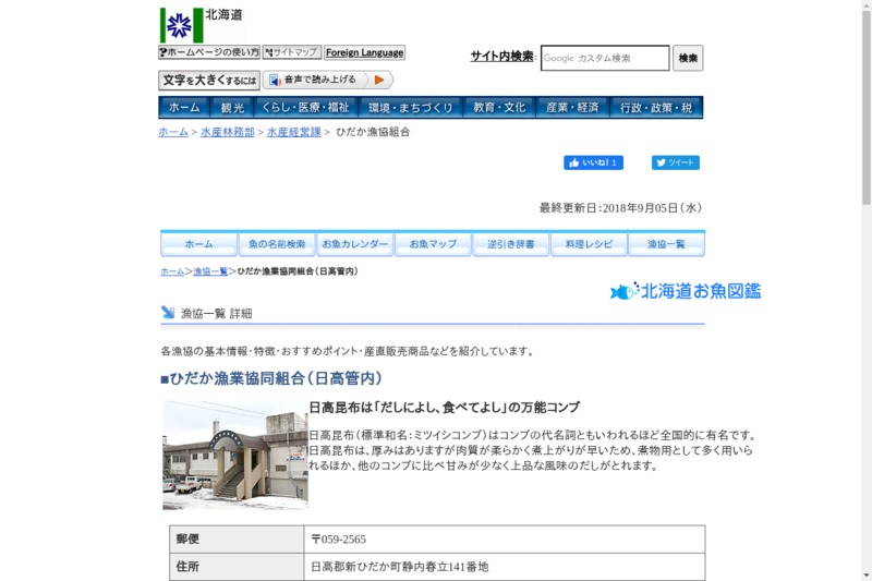 店舗名 ひだか漁業協同組合 特産品販売センター
