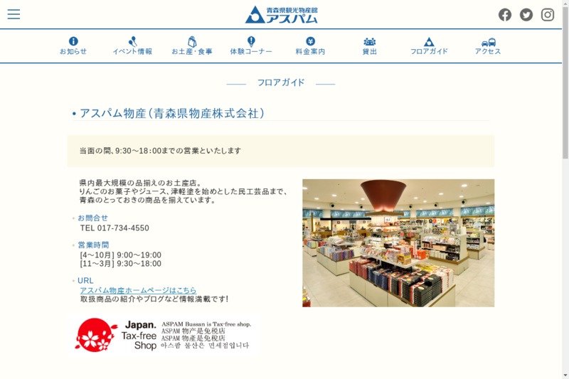 ホームページ http://aspm.aomori-kanko.or.jp/shop01.html