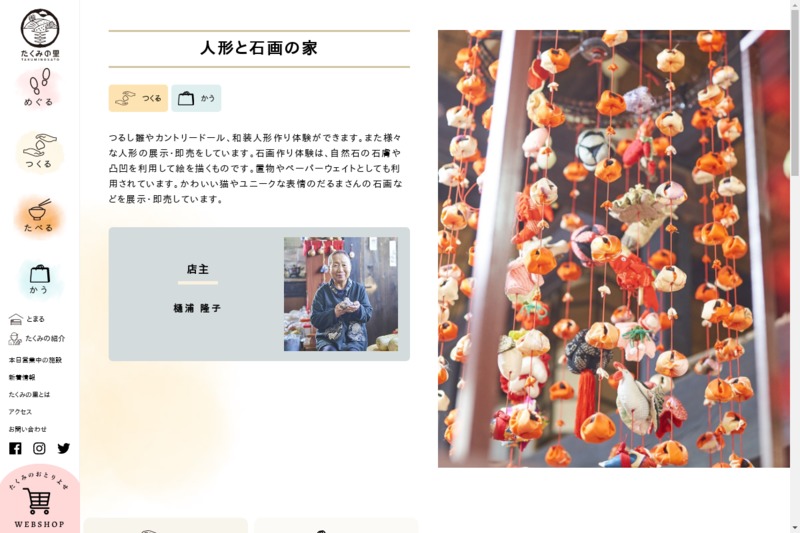 ホーム東京/関東のショップ群馬県のショップ利根郡みなかみ町のショップ 人形と石画の家 2021年1月5日 SHARE ポスト シェア はてブ LINE 店舗名 人形と石画の家 住所 〒379-1418 群馬県利根郡みなかみ町須川462-3 電話番号 – ホームページ https://takuminosato.jp/takuminoie/ningyou/ 営業時間 –