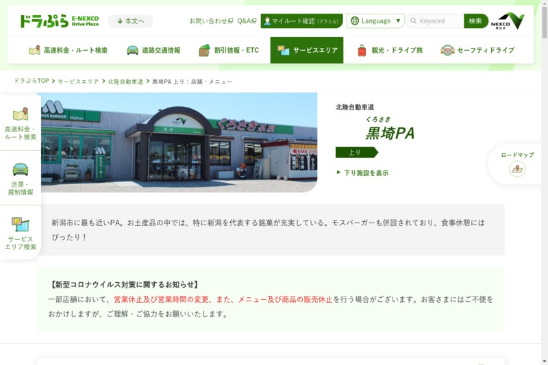 | 店舗名 | ショッピングコーナー 黒埼PA上り |