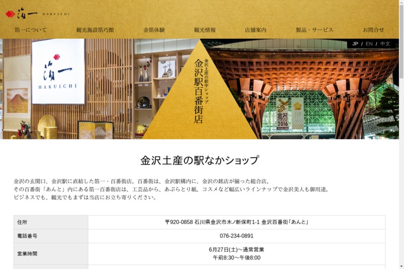 | 店舗名 | 箔一 金沢百番街店 |