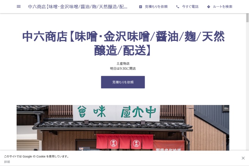 | 店舗名 | 中六商店【味噌・金沢味噌/醤油/麹/天然醸造/配送】 |