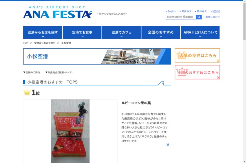 | 店舗名 | ANA FESTA小松ロビー店 |