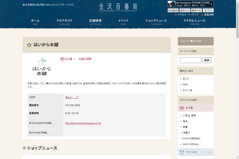 | ホームページ | https://www.100bangai.co.jp/tenantinfo/%e3%81%af%e3%81%84%e3%81%8b%e3%82%89%e6%9c%ac%e8%88%97/ |