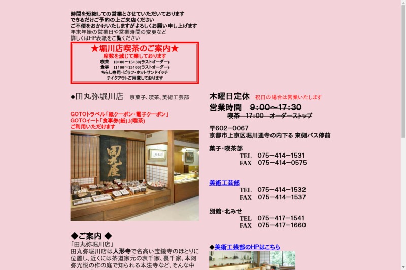 | 店舗名 | 田丸弥 堀川店 | 京土産 茶道具 |