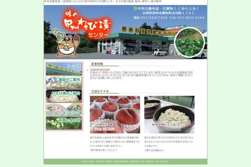 店舗名 味の甲州わさび漬センター (地域物産・土産品販売店)