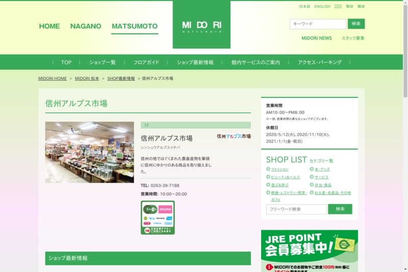 | 店舗名 | 信州アルプス市場 |