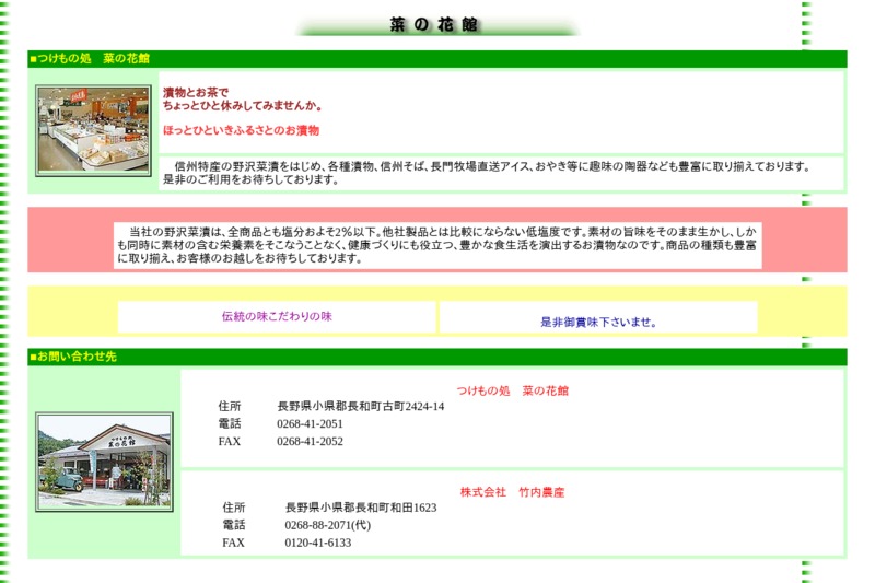 | ホームページ | http://www.shinsyu-nozawana.co.jp/nanohana.htm |