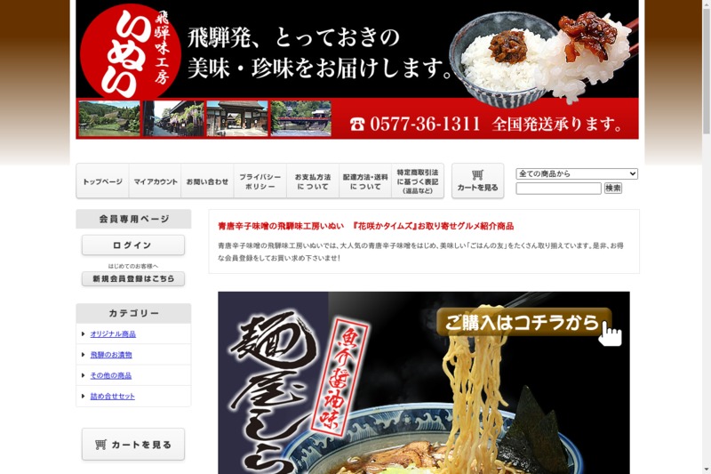 ホーム北陸/東海のショップ岐阜県のショップ高山市のショップ 飛騨味工房 いぬい 2021年1月5日2021年1月6日 SHARE ポスト シェア はてブ LINE 店舗名 飛騨味工房 いぬい 住所 〒506-0802 岐阜県高山市松之木町2745-11 電話番号 0577-36-1311 ホームページ http://www.hidamiso.jp/ 営業時間 –