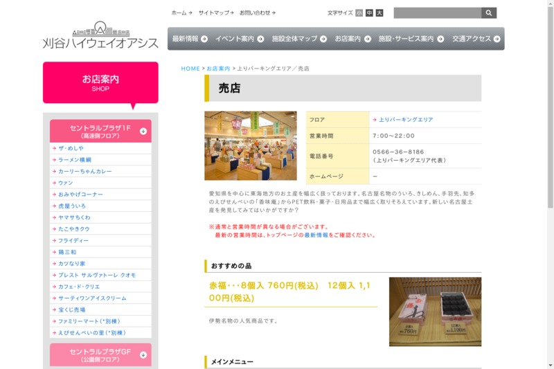 | 店舗名 | 売店 刈谷PA(上り) |