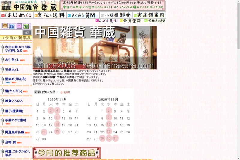 ホーム北陸/東海のショップ愛知県のショップ瀬戸市のショップ 中国雑貨 華蔵(はなくら) 2021年1月5日2021年1月6日 SHARE ポスト シェア はてブ LINE 店舗名 中国雑貨 華蔵(はなくら) 住所 〒489-0043 愛知県瀬戸市朝日町17 電話番号 0561-82-2522 ホームページ https://www.seto-hanakura.com/ 営業時間 –