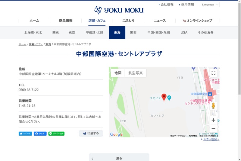 | 店舗名 | ヨックモック中部国際空港 セントレアプラザ |
