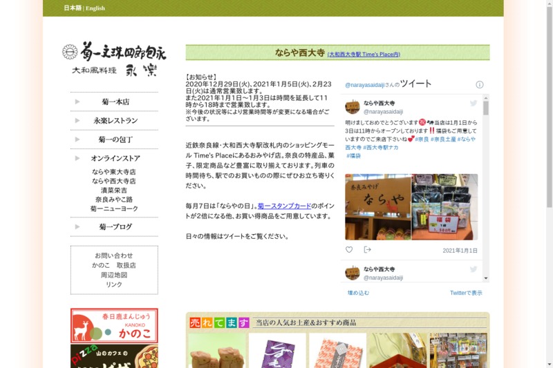 | ホームページ | https://kikuichi.com/narayasaidaiji.php |