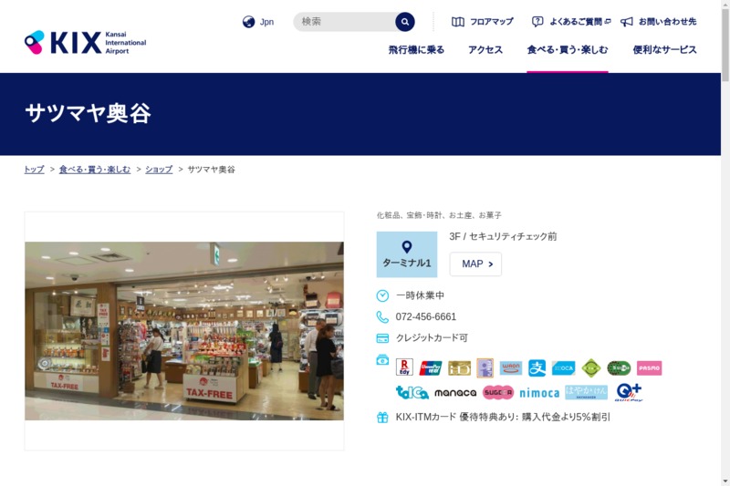 | 店舗名 | (株)サツマヤ奥谷 関西国際空港店 |