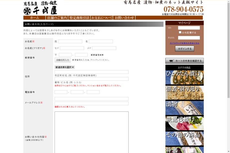 ホームページ http://arima-sennariya.jp/ec/contact/index.php