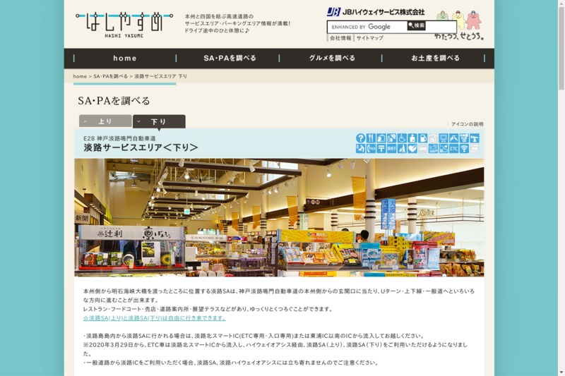 ホームページ https://www.jb-highway.co.jp/sapa/awaji_down.php