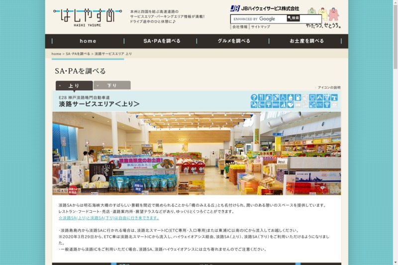 ホームページ https://www.jb-highway.co.jp/sapa/awaji_up.php