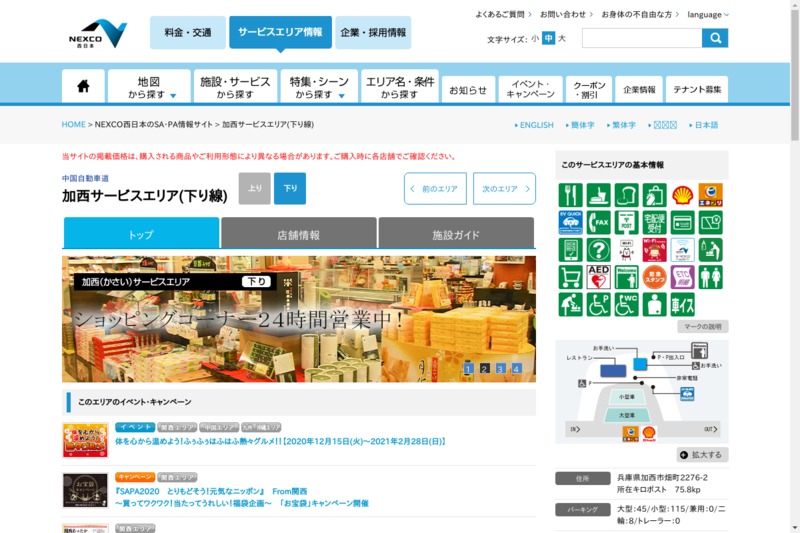 | 店舗名 | ショッピングコーナー 加西SA下り |