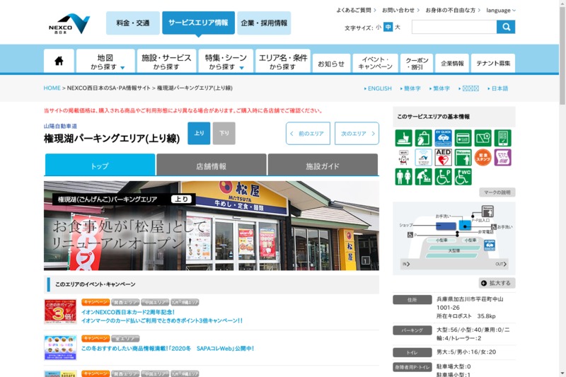 | 店舗名 | ショッピングコーナー 権現湖PA 上り |