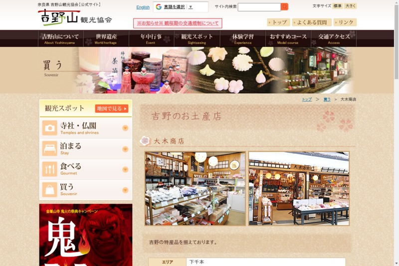| ホームページ | http://www.yoshinoyama-sakura.jp/omiyage/o_oki.php |