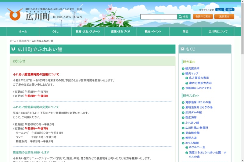 | ホームページ | https://www.town.hirogawa.wakayama.jp/kankou/fureaikan.html |