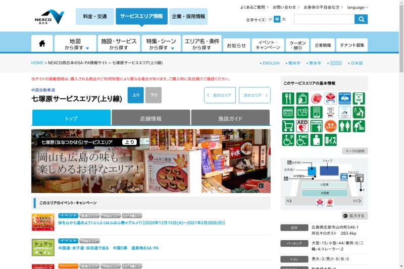 | 店舗名 | ショッピングコーナー 七塚原SA(上り線) |