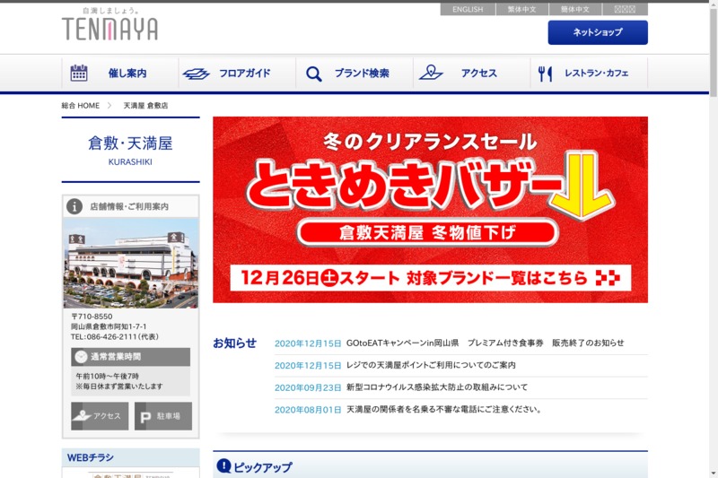 | ホームページ | https://www.tenmaya.co.jp/kurashiki/ |