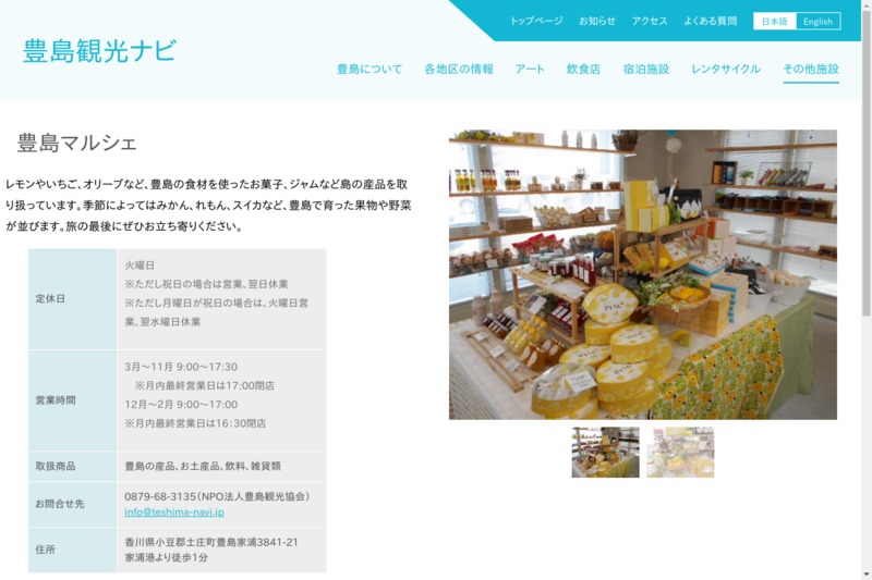 | ホームページ | https://teshima-navi.jp/spot/%E8%B1%8A%E5%B3%B6%E3%83%9E%E3%83%AB%E3%82%B7%E3%82%A7/ |
