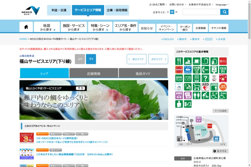 | 店舗名 | ショッピングコーナー 福山SA (下り) |