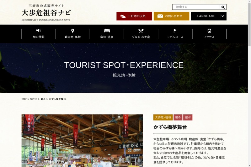 ホームページ https://miyoshi-tourism.jp/spot/kazurabashiyumebutai/