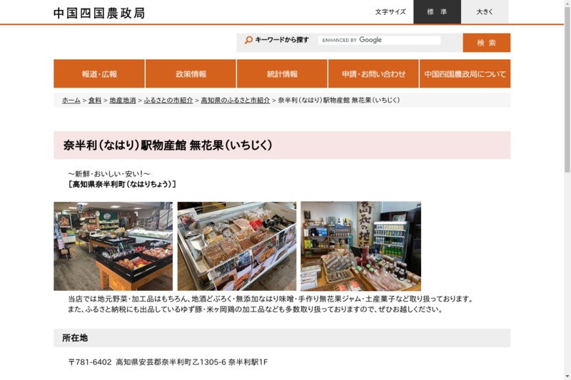| 店舗名 | 奈半利 駅物産館 無花果 |