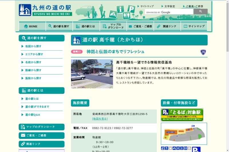 ホームページ http://www.qsr.mlit.go.jp/n-michi/michi_no_eki/kobetu/takachiho/takachiho.html