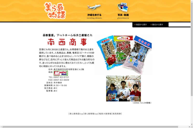 ホームページ http://www.churashima.net/shima/amami/omiyage/